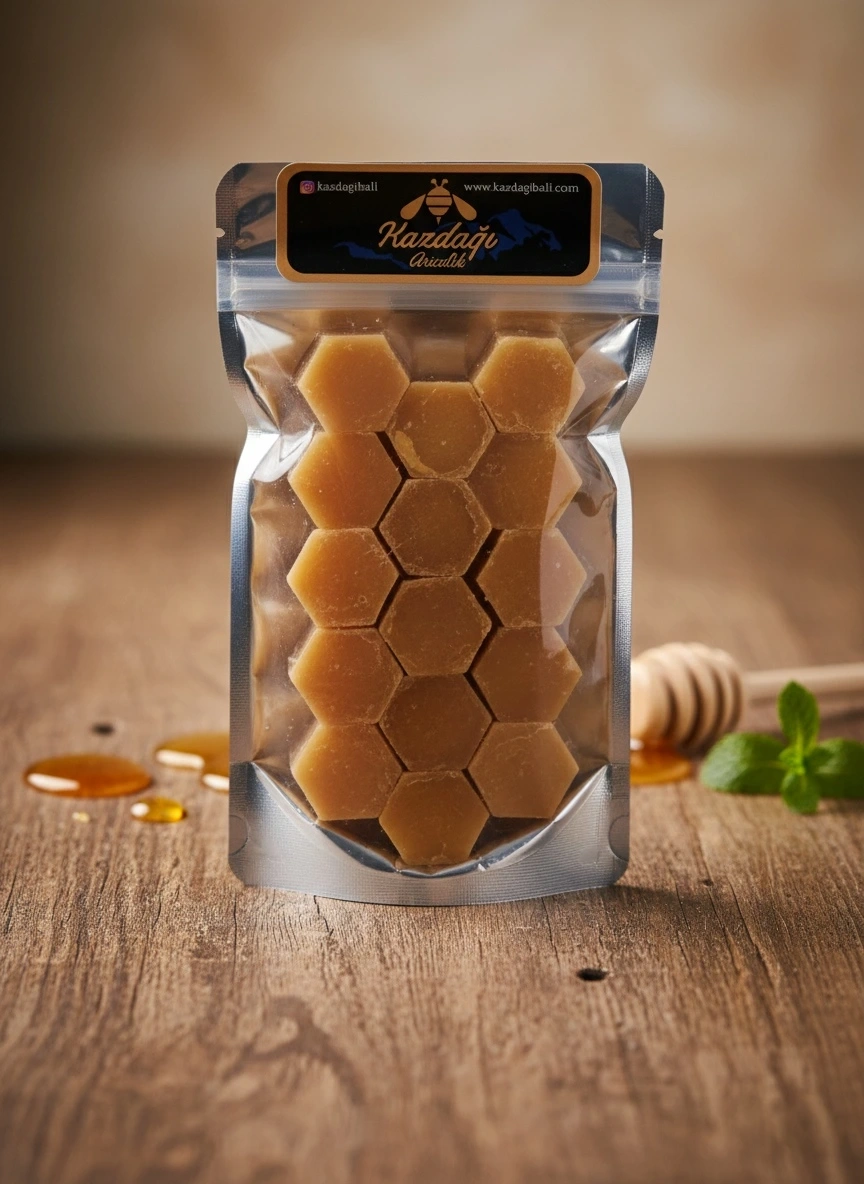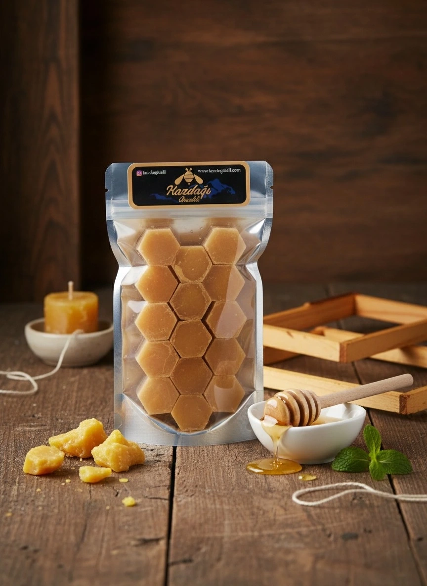 Kazdağı’nın doğal florasında üretilen saf bal mumunu geleneksel yöntemlerle temizleyip küp küp kullanımı kolay hale getiriyoruz.